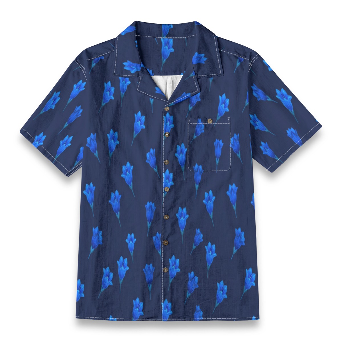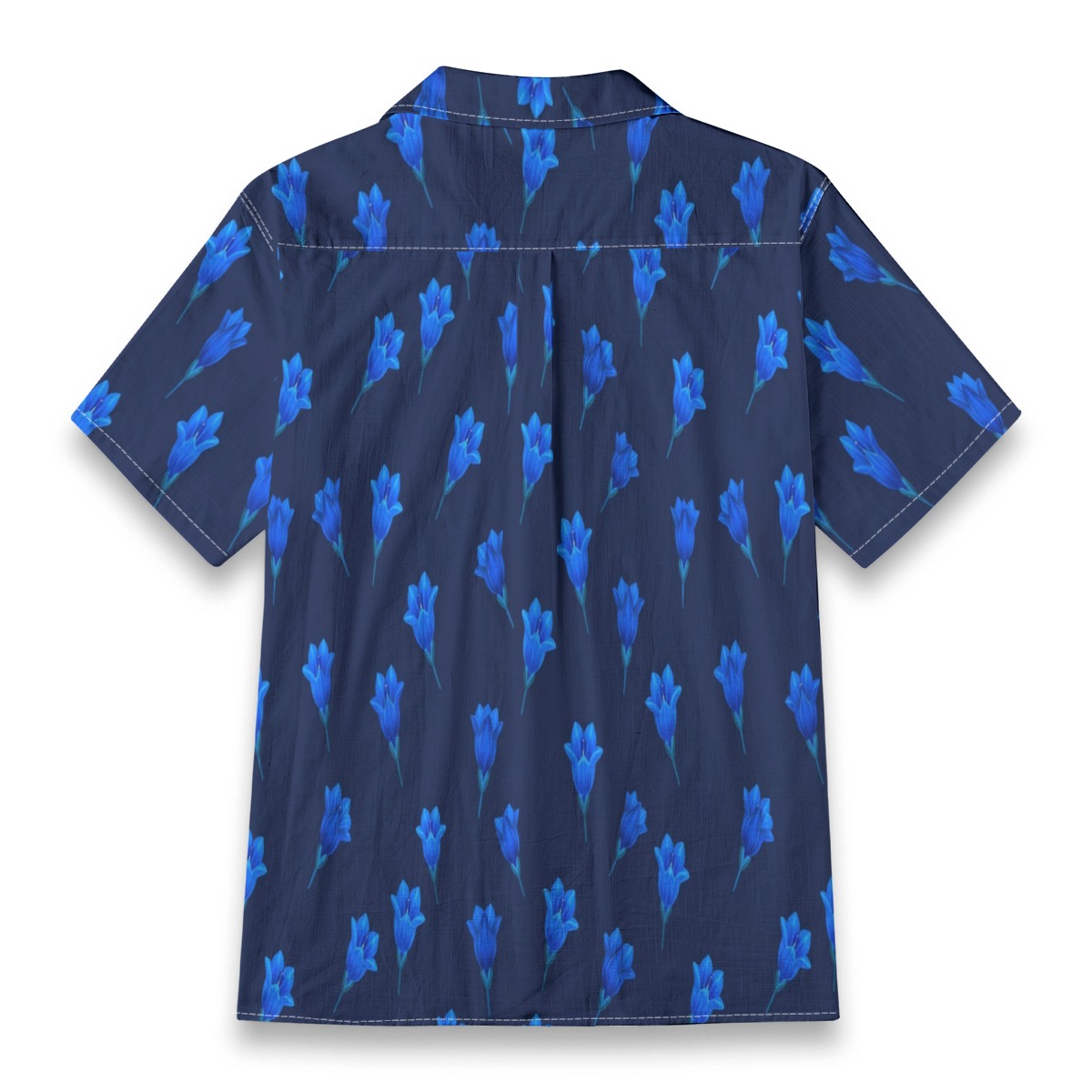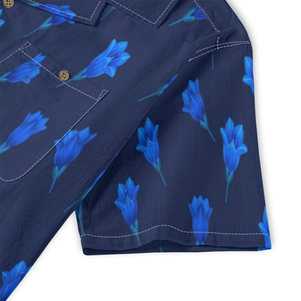 Bold gentian flowers stand out against a rich blue background, creating a striking monochromatic effect. The repeating layout adds rhythm and balance, while the intense tones give the design a vibrant and energetic feel.