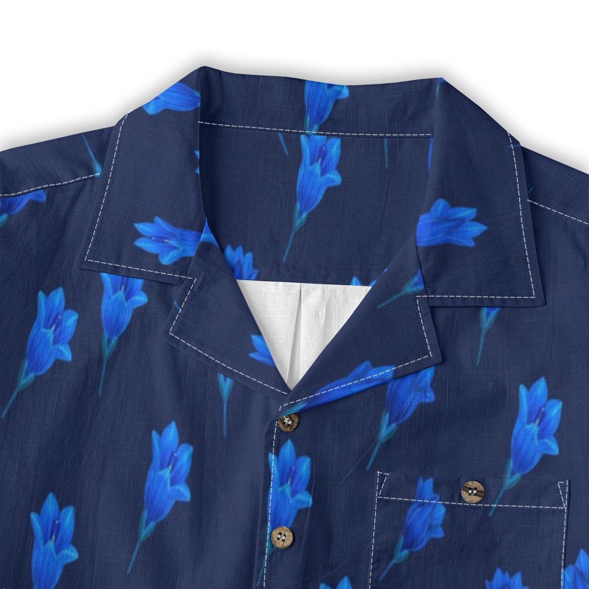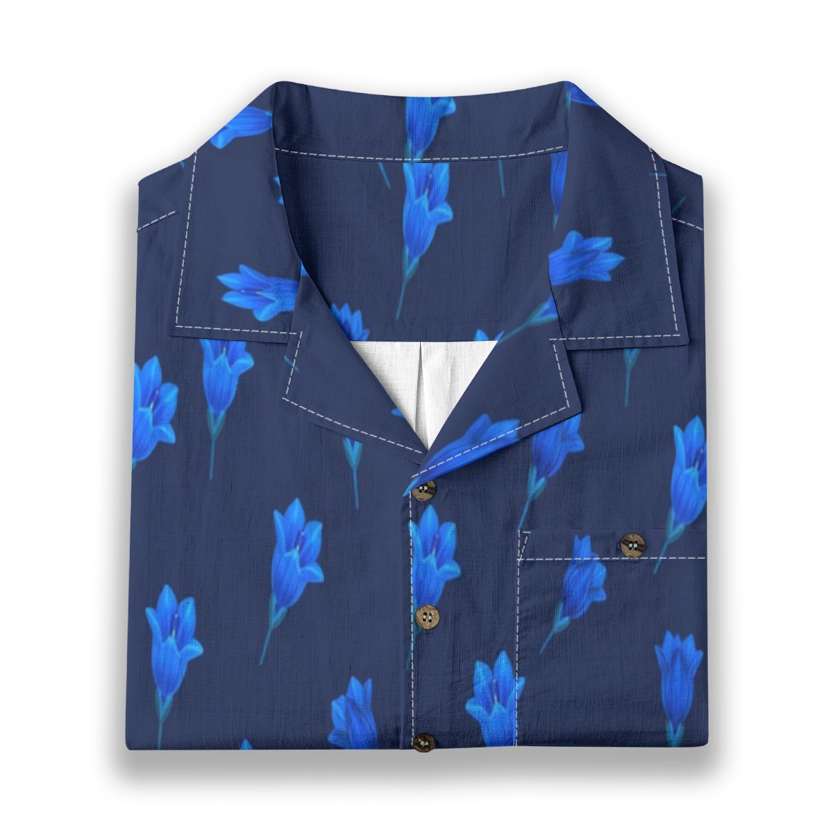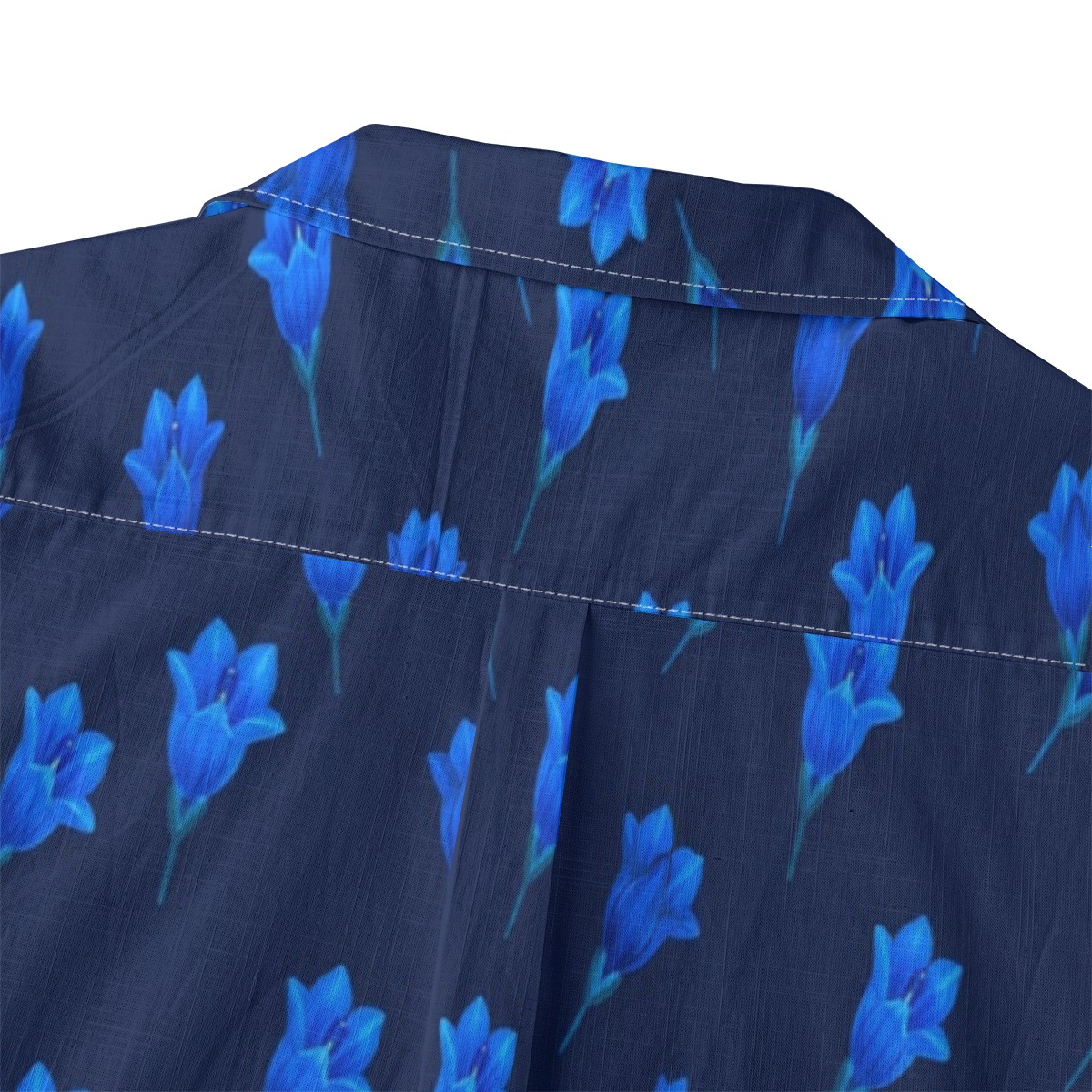 Bold gentian flowers stand out against a rich blue background, creating a striking monochromatic effect. The repeating layout adds rhythm and balance, while the intense tones give the design a vibrant and energetic feel.