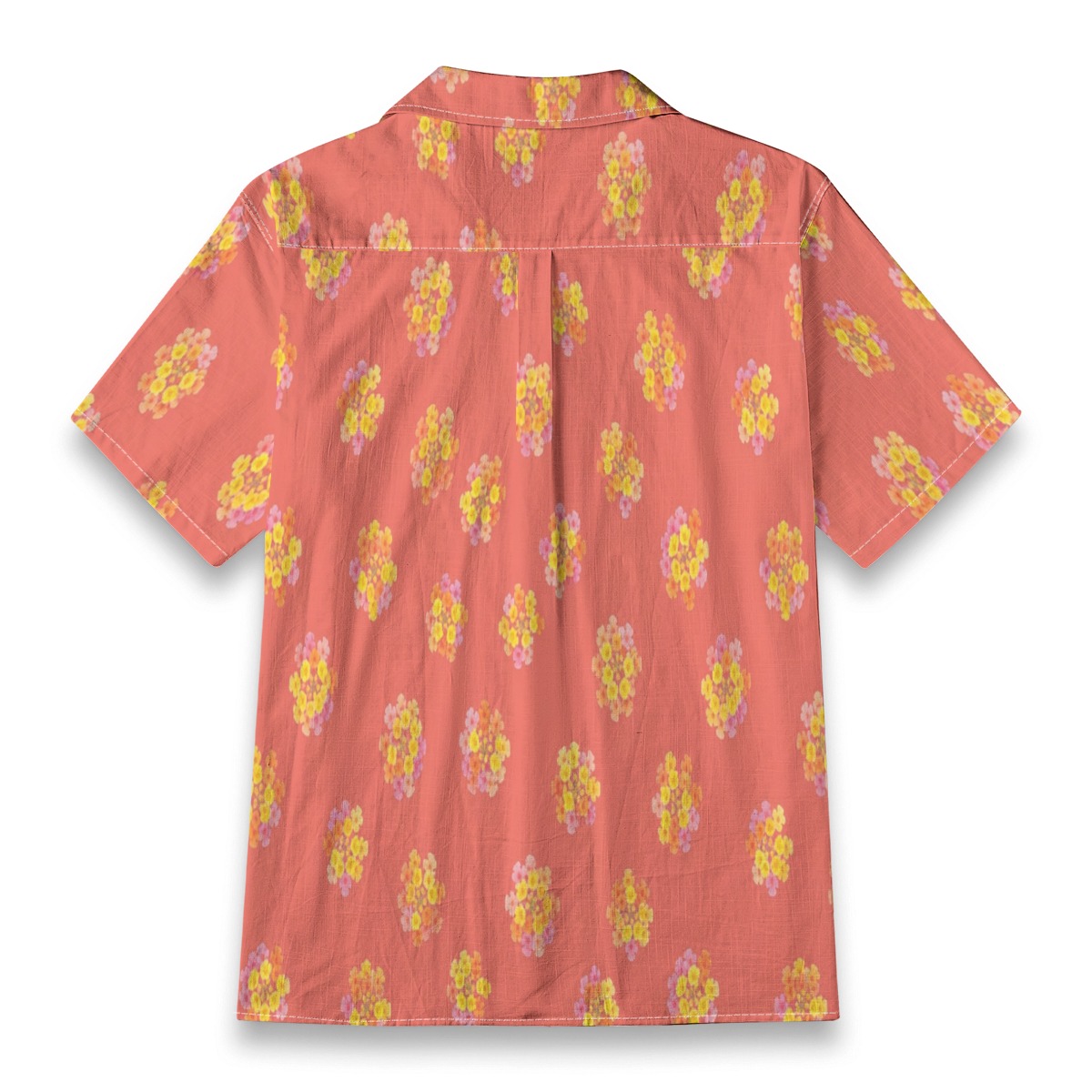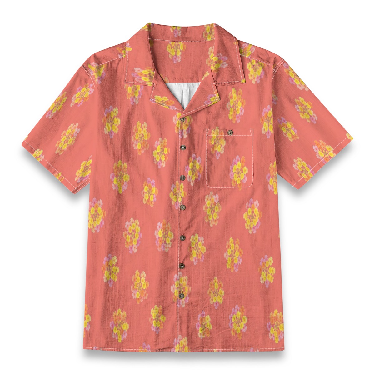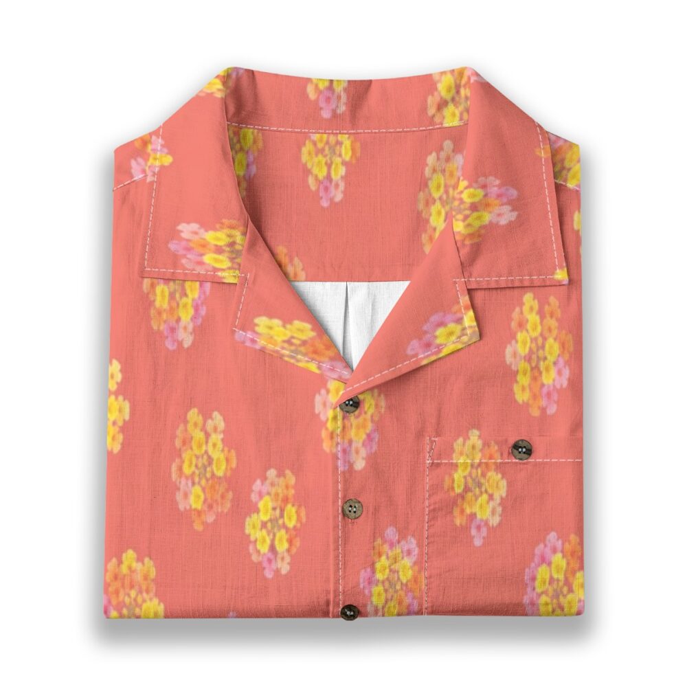 Colorful lantana clusters spread across a warm coral base, bringing a lively burst of tropical hues. The mix of orange, yellow, and pink creates a cheerful palette, while the even spacing keeps the pattern cohesive and bright.