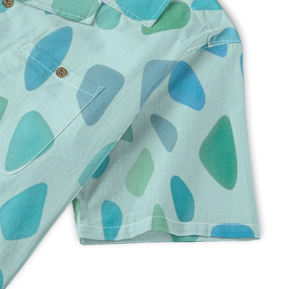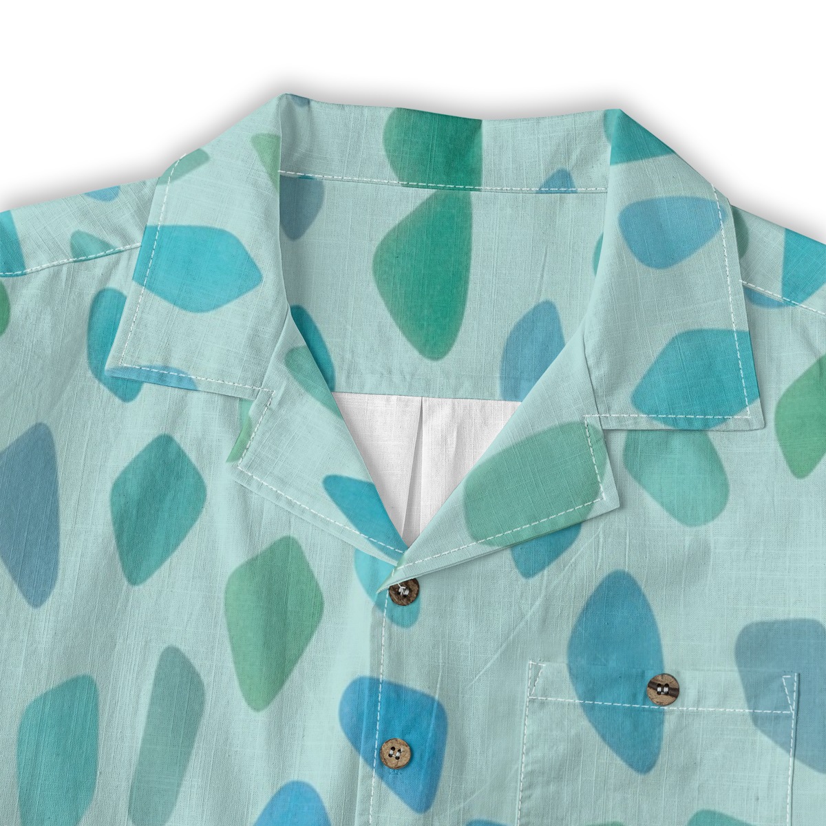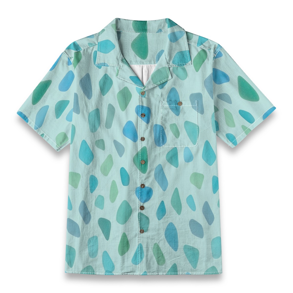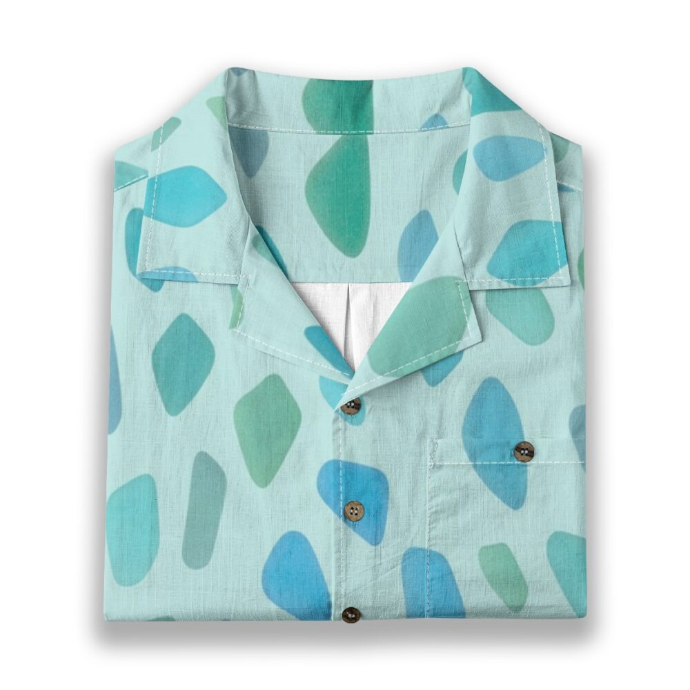 Soft fragments of ocean glass drift across a clear aqua background, creating a smooth and luminous pattern. The translucent blues and greens blend effortlessly, while the evenly spaced layout adds a gentle, flowing rhythm.